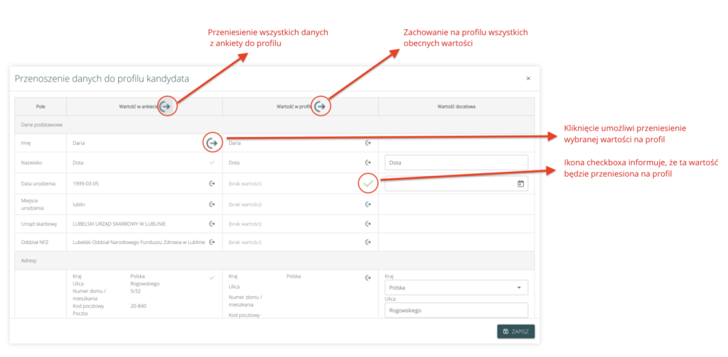 Przenoszenie danych z ankiety do zatrudnienia do profilu pracownika #