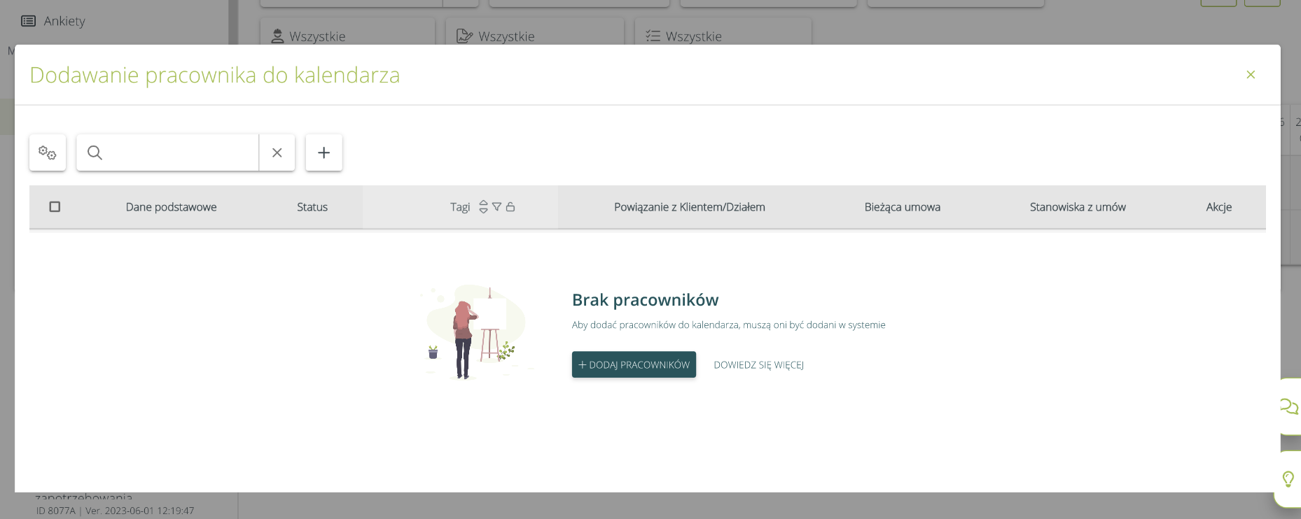 • Dlaczego na kalendarzu pracy nie pojawiają się pracownicy i jak ich dodać?