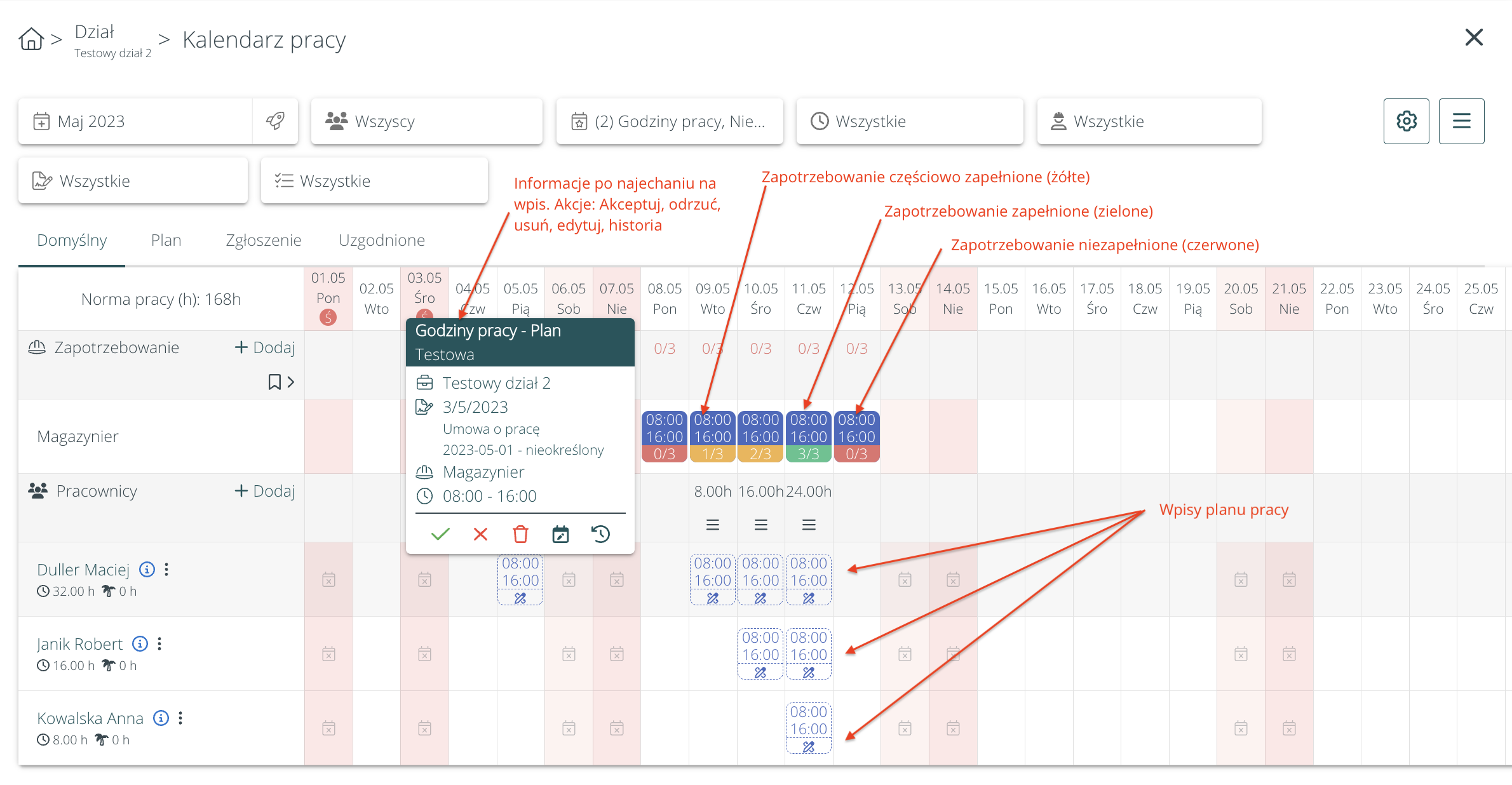 Jeżeli wcześniej na projekcie określiłeś zapotrzebowanie, automatycznie pojawi się ono na kalendarzu.