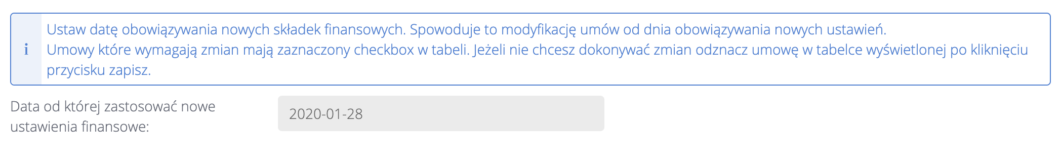 Jeżeli zmienisz dane do rozliczeń, system poprosi o wpisanie daty, od której zastosować nowe dane finansowe: