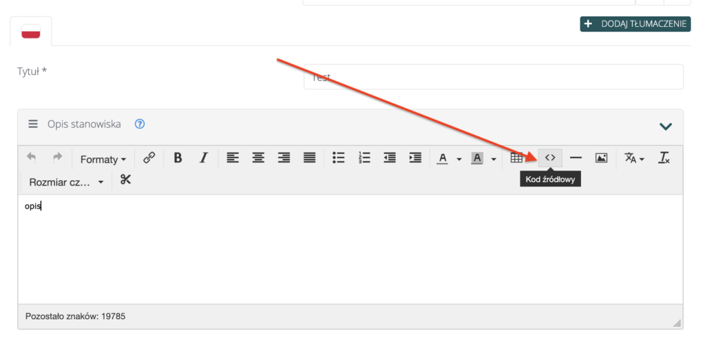 W kolejnym kroku należy przejść do edytora w Faktura.pl i włączyć tryb kod źródłowy: