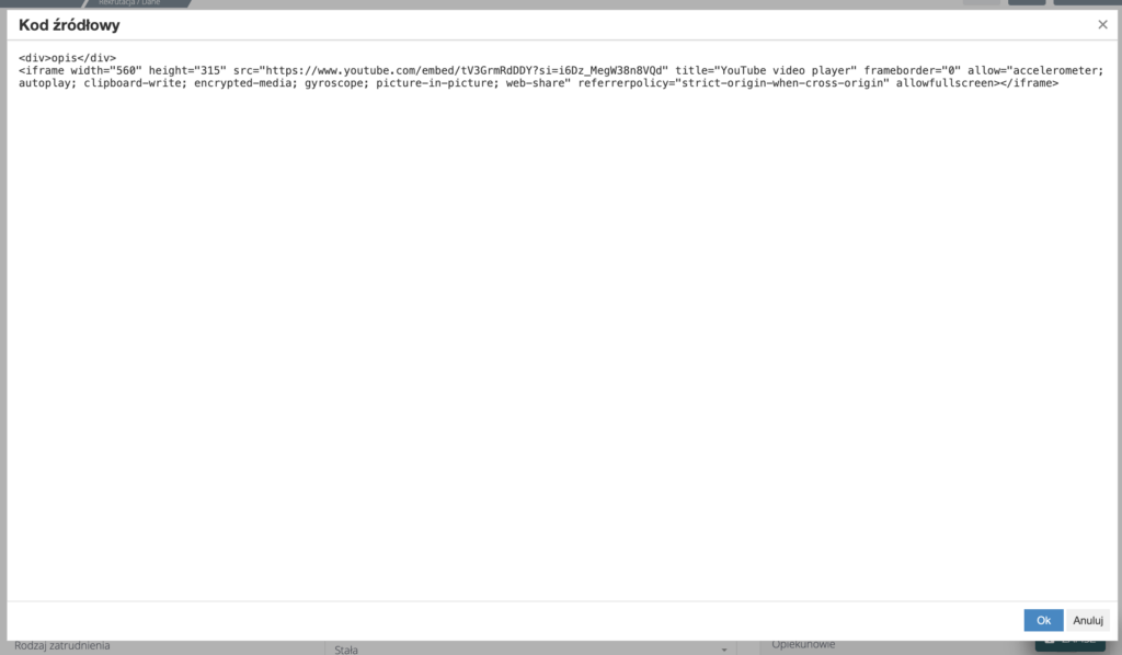Z platformy, na której umieszczono film należy pobrać kod do wstawienia video.