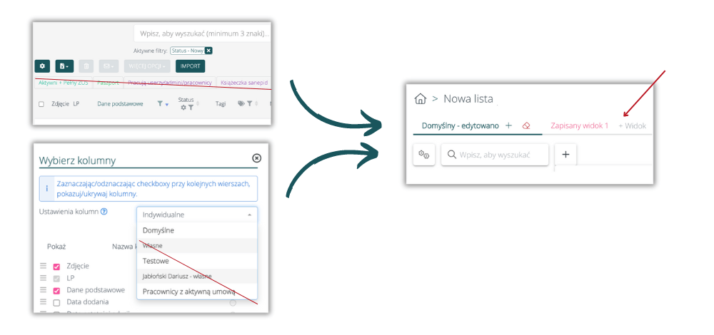• Widoki na listach w systemie – zapisanie filtrów i układu kolumn