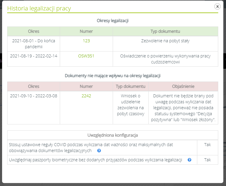 - Uwzględnienia konfiguracji podczas wyliczania daty ważności legalizacji cudzoziemca