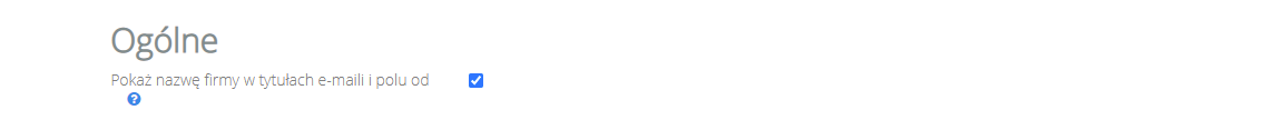 W Ustawienia > Konfiguracja > Poczta zostało dodane pole “Pokaż nazwę firmy w tytułach e-maili i polu od”. Zaznaczenie pola spowoduje pokazanie w tytułach maili oraz polu ,,Od’’ nazwę firmy, z której są wysyłane.