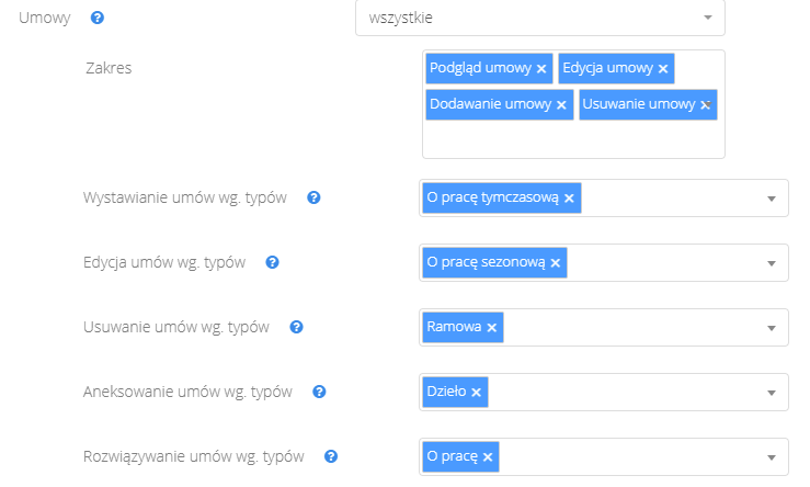 Zakres uprawnień umów możemy jeszcze bardziej zawęzić poprzez wybór typu umowy.