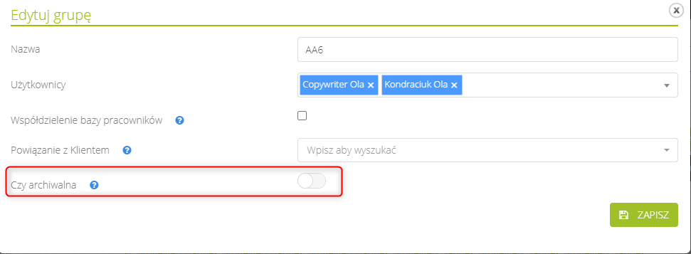 Edytowanie grupy: nowa opcja “Czy archiwalna” #