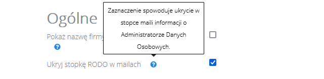 Konfiguracja ustawień poczty: nowa opcja „Ukryj stopkę RODO w mailach” #