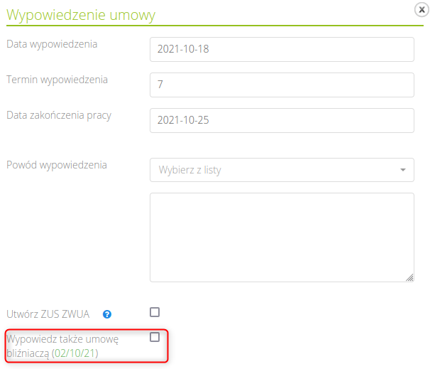 - wypowiadając umowę bliźniaczą, na dole okna pojawi się nowa opcja “Wypowiedz także umowę bliźniaczą”.