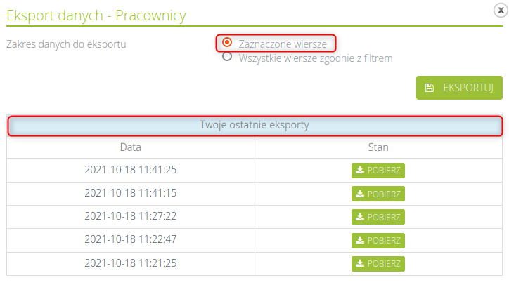 Eksport danych pracowników oraz kandydatów: możliwość pobierania wszystkich rekordów oraz historia eksportów #