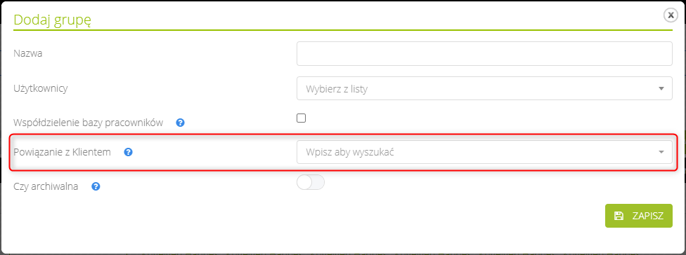 Dodawanie grupy: nowa opcja “Powiązanie z Klientem” #