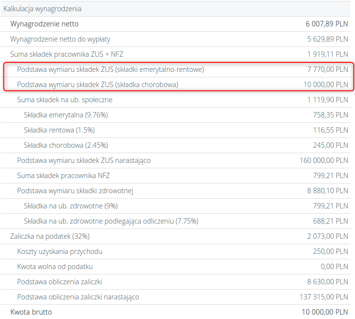 - Podstawa wymiaru składek ZUS (składka chorobowa)