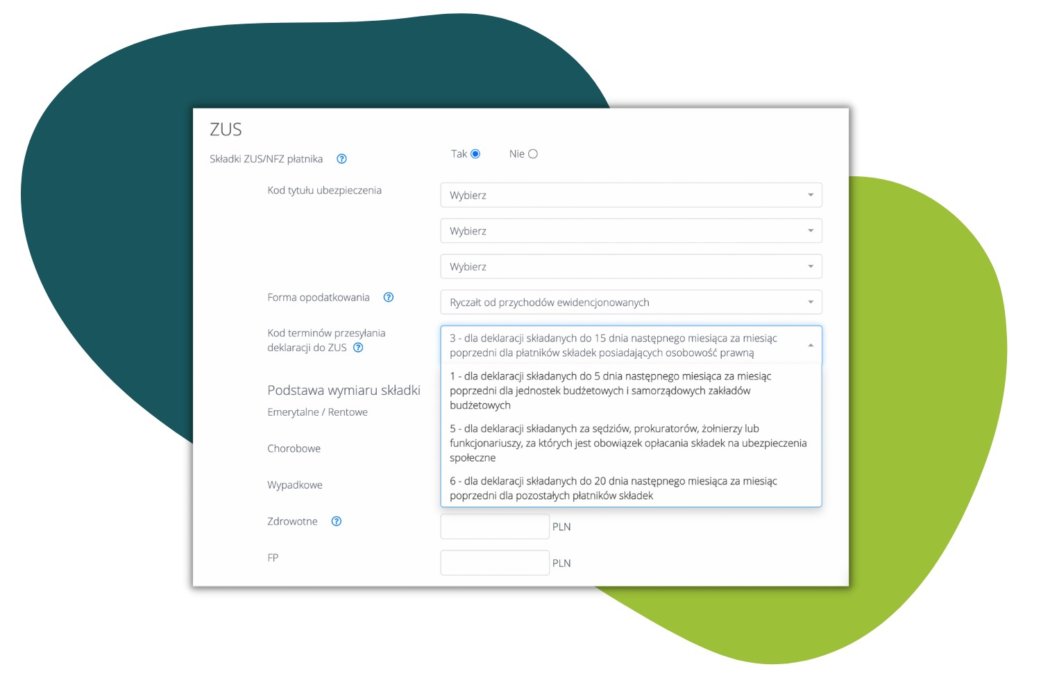 Co więcej, w Ustawienia firmy > Ustawienia finansowe, w sekcji ZUS dostępna jest konfiguracja: