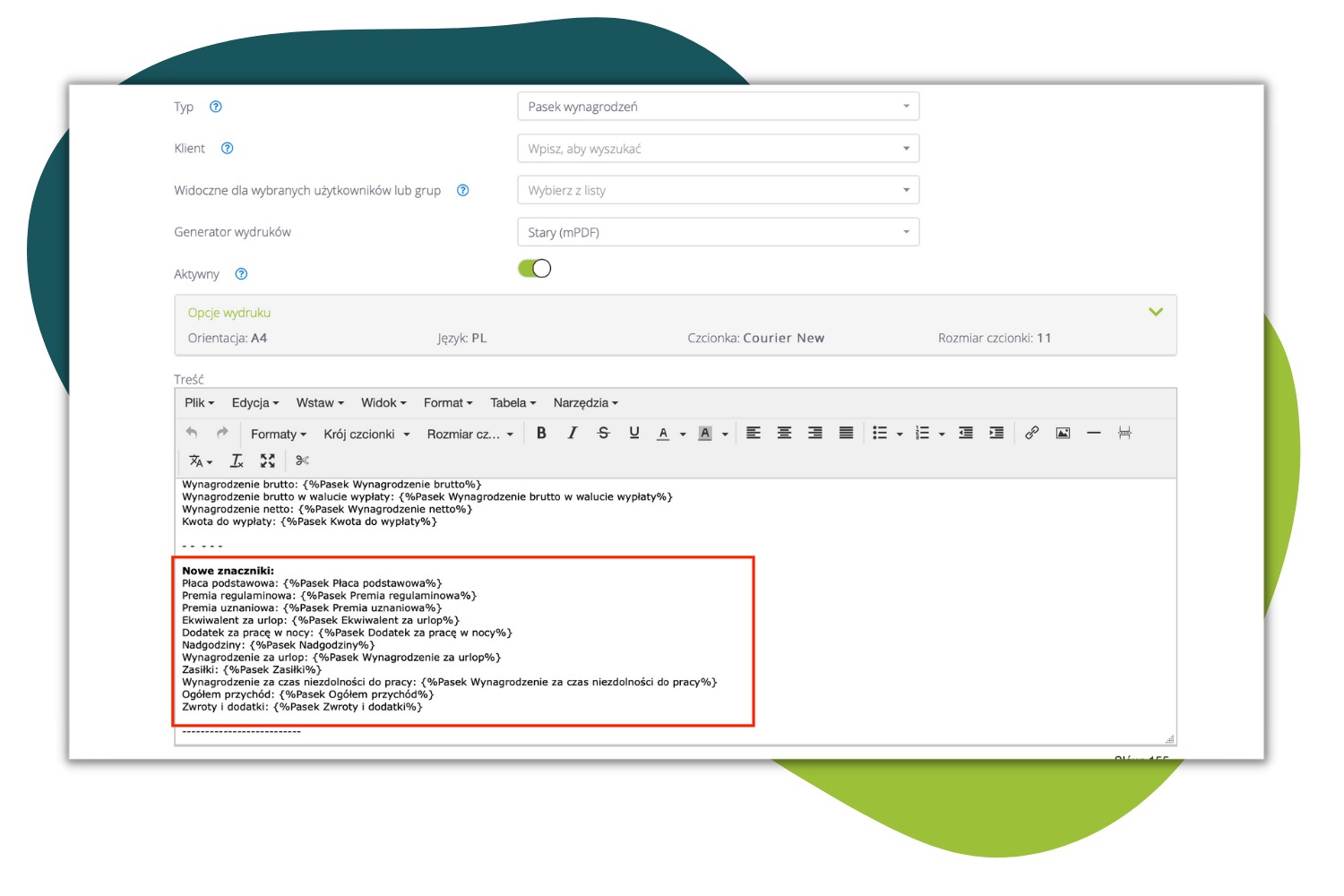 Nowe znaczniki na wydruku paska wynagrodzeń #