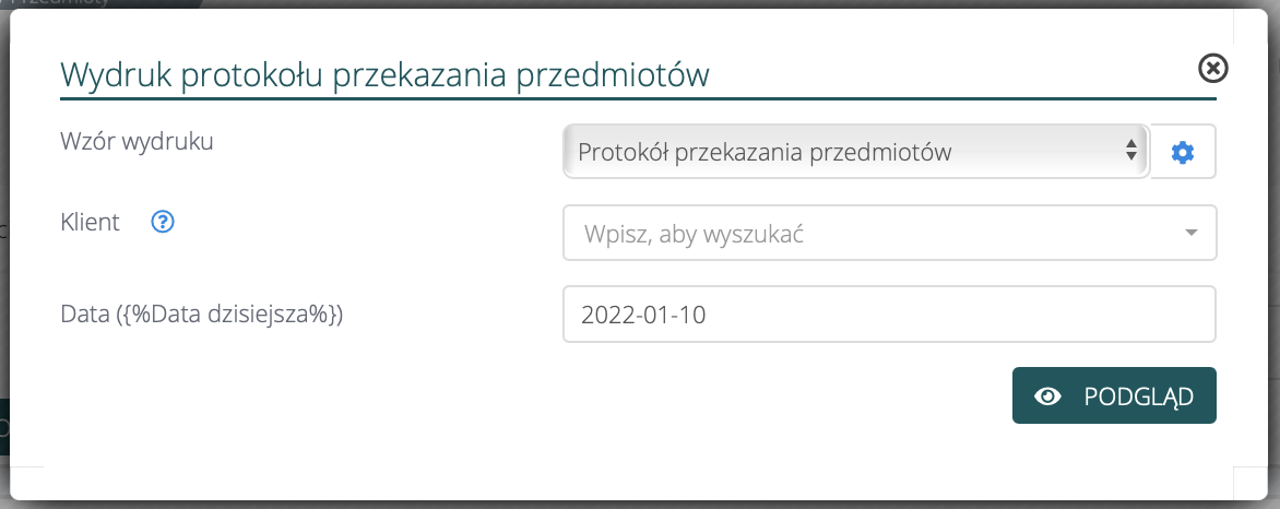 W Pracownicy > Lista pracowników > Dany pracownik > Przedmioty, nad listą przedmiotów dodany został przycisk „Wydruk”. Możliwy jest on po zaznaczeniu przynamniej jednego przedmiotu.