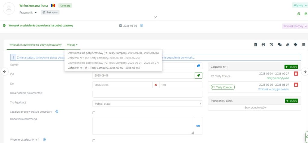 Wniosek o pobyt czasowy – obsługa załączników wielofirmowo #