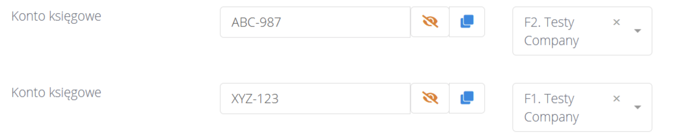 - Jeżeli pracownik posiada więcej niż jedno konto księgowe na różnych firmach, należy obowiązkowo wypełnić pole z nazwą firmy, dla każdego z kont.