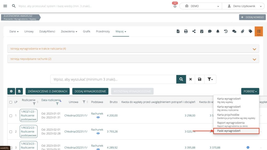 Generowanie pasków płacowych z poziomu wynagrodzeń pracownika #