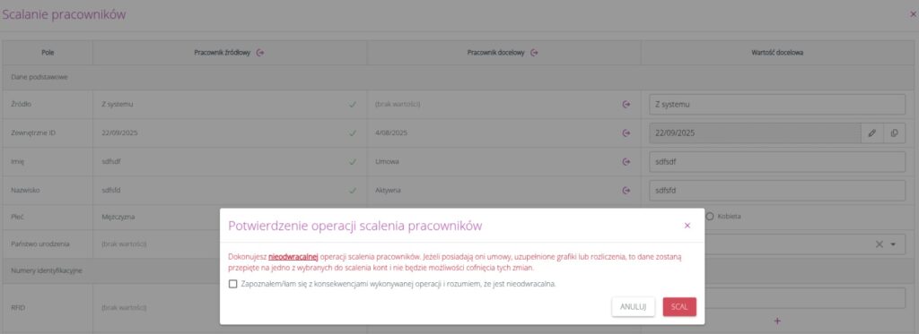 Podczas operacji scalania pracowników wprowadzono dwa udoskonalenia: