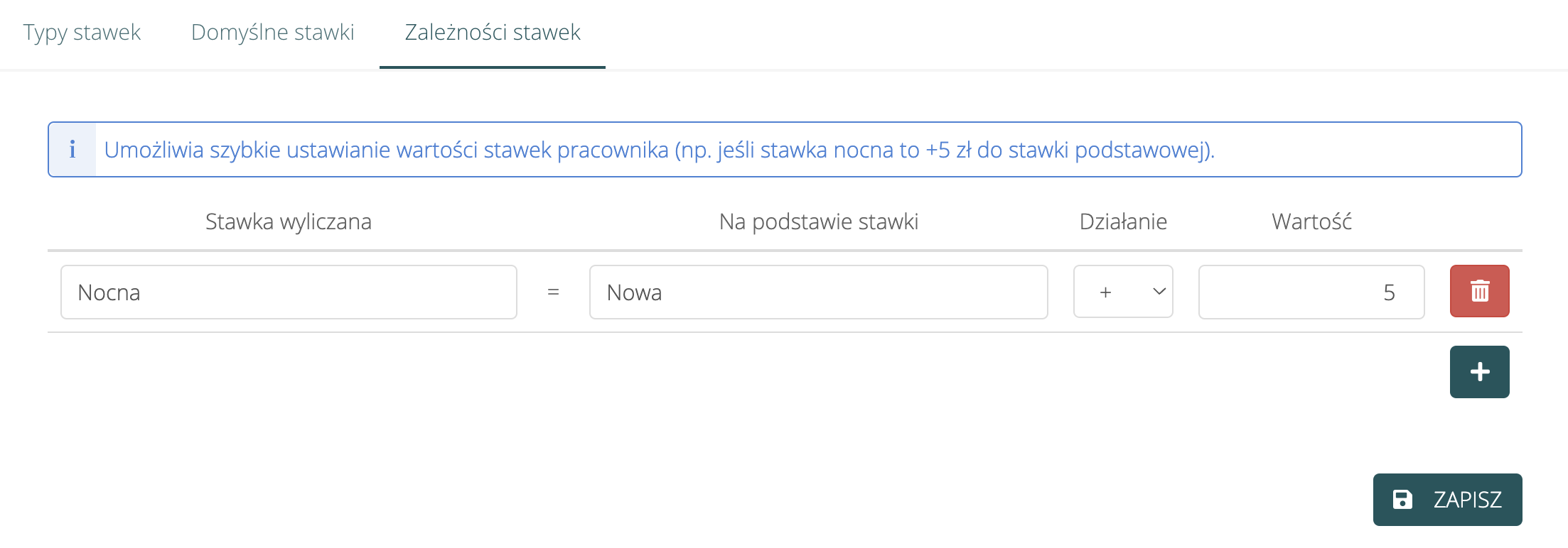 Umożliwiliśmy sprawne ustawianie wartości stawek pracownika w zależności od innych stawek (np. obliczanie stawki nocnej na podstawie dodawania wartości do stawki dziennej).