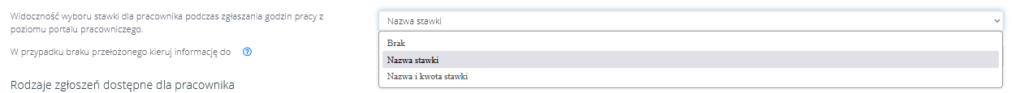 Aby zwiększyć kontrolę nad przekazywanymi informacjami dla pracownika zmodyfikowaliśmy ustawienie dotyczące pokazywania pracownikowi wyboru stawki podczas zgłaszana godzin pracy z poziomu portalu pracownika.