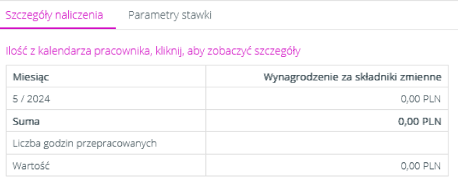 - Nazwa i kwota stawki – pracownik będzie miał wgląd nie tylko w nazwę ale również w wartość stawki.