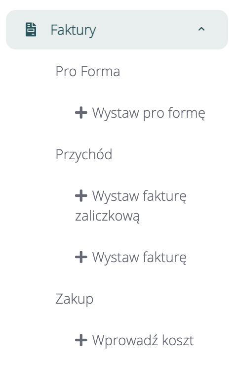Faktury zostały przeniesione do menu głównego. Poza zmianą lokalizacji, menu i funkcjonalności pozostały bez zmian: