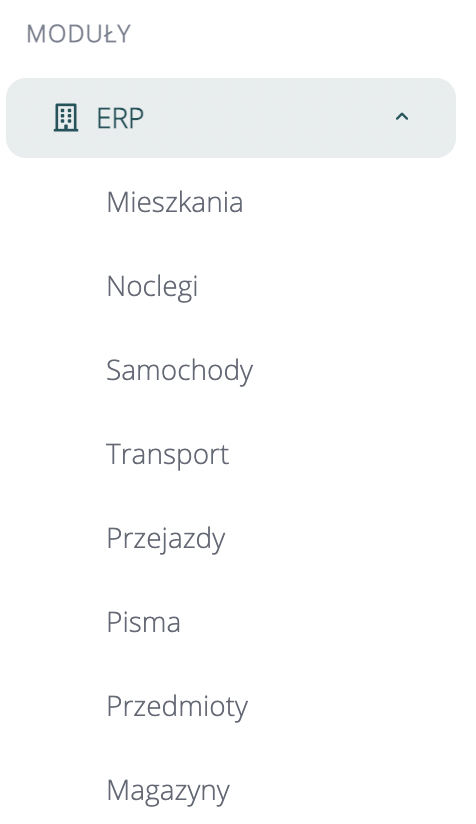Moduł ERP posiada podmoduły pozwalające zarządzać zasobami przedsiębiorstwa: