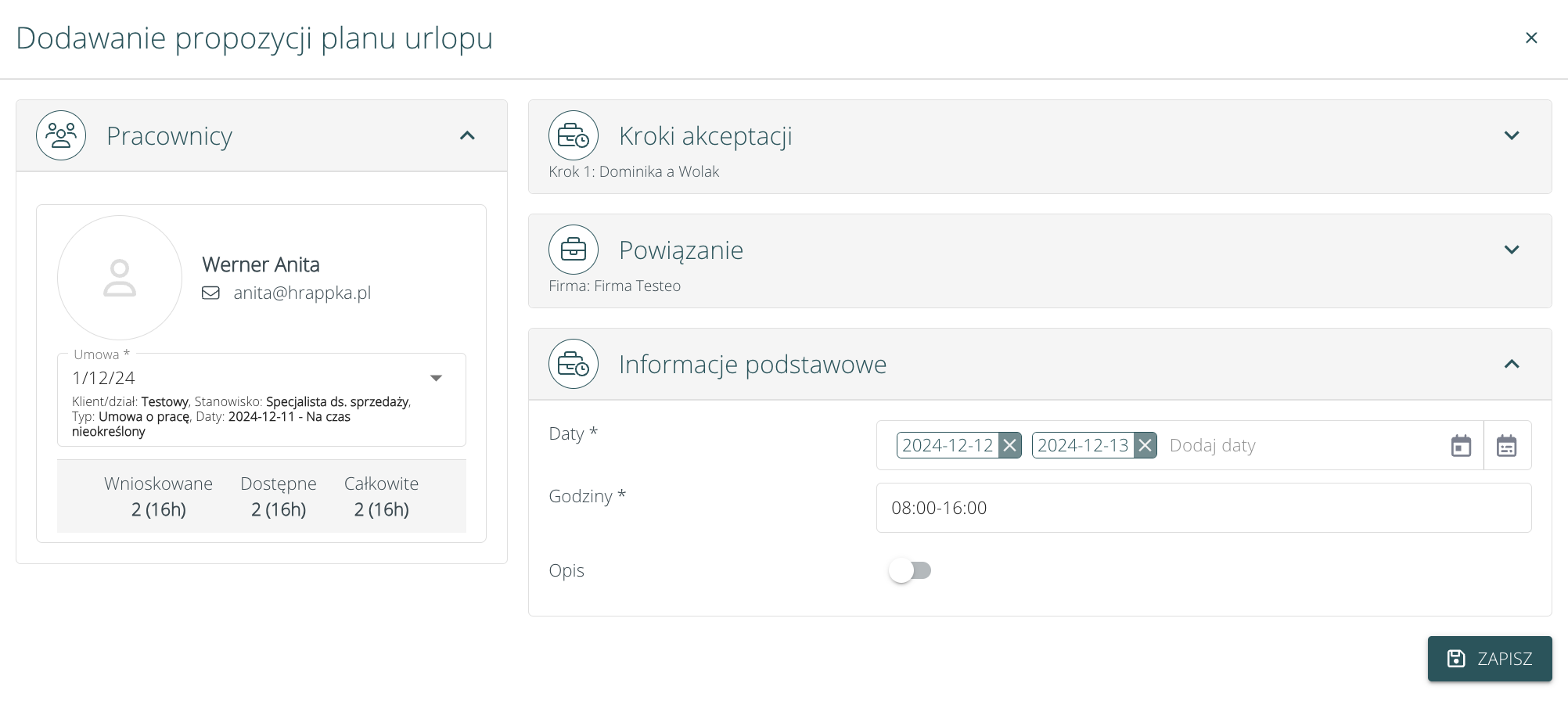 Dodawanie propozycji planu urlopu z portalu pracowniczego #
