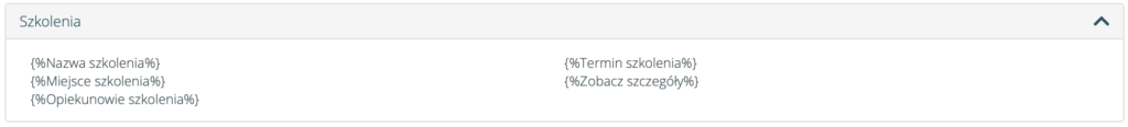 - Szablon wiadomości będzie można wybrać podczas dodawania pracownika do szkolenia. Podczas wysyłki zaproszenia na szkolenie do pracownika, zmienne podmienią się na dane szkolenia.