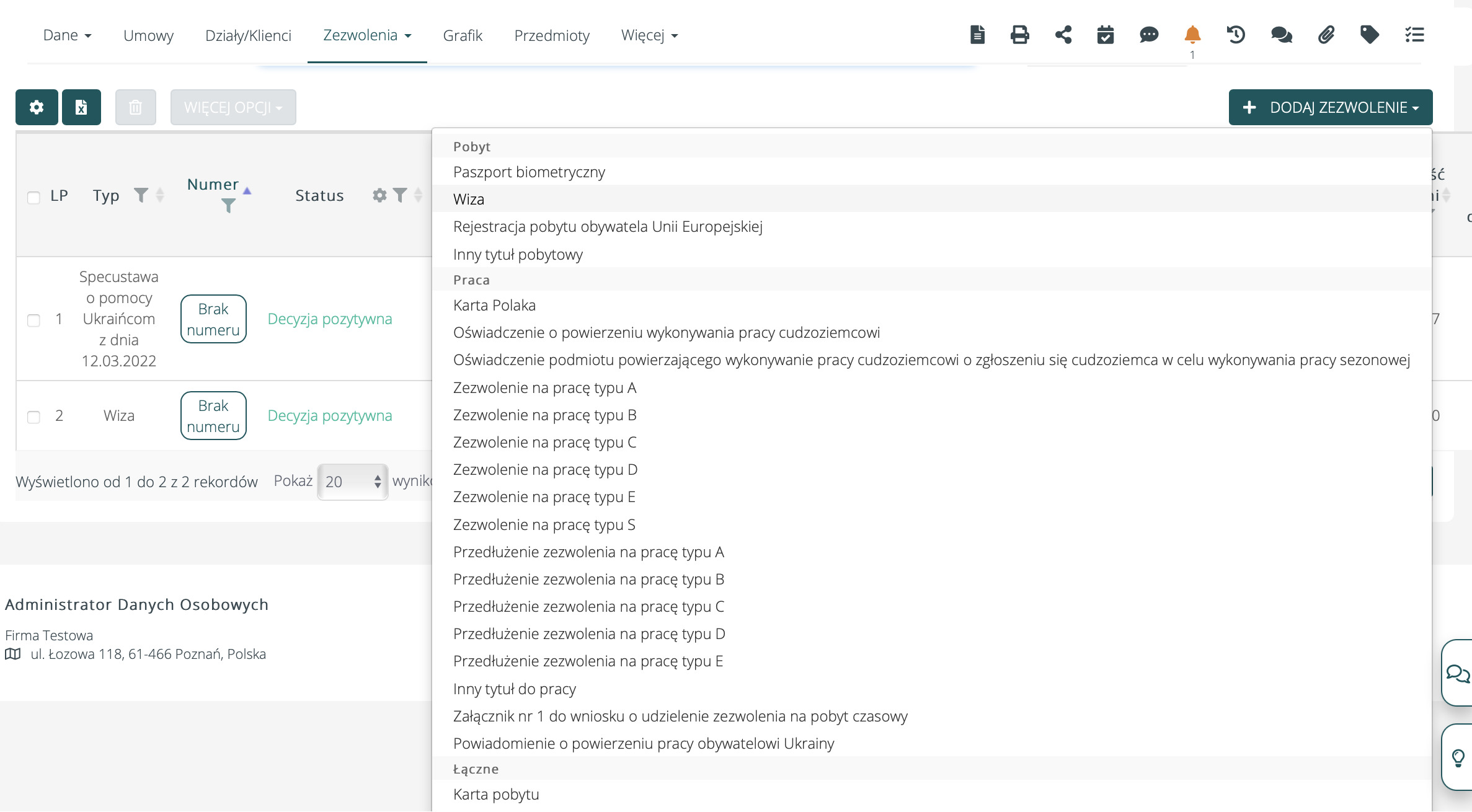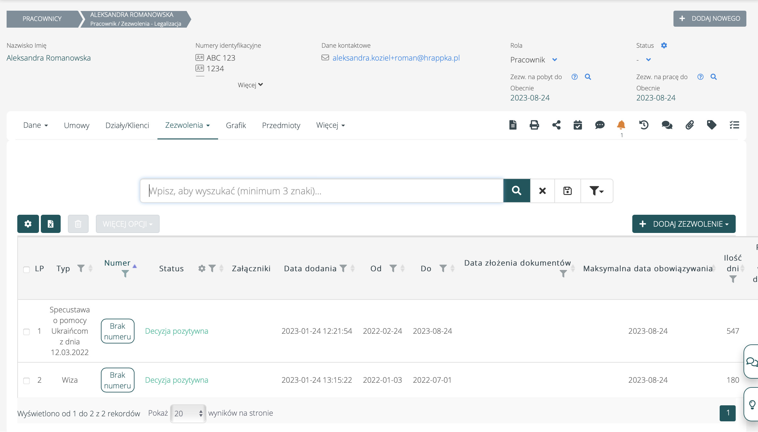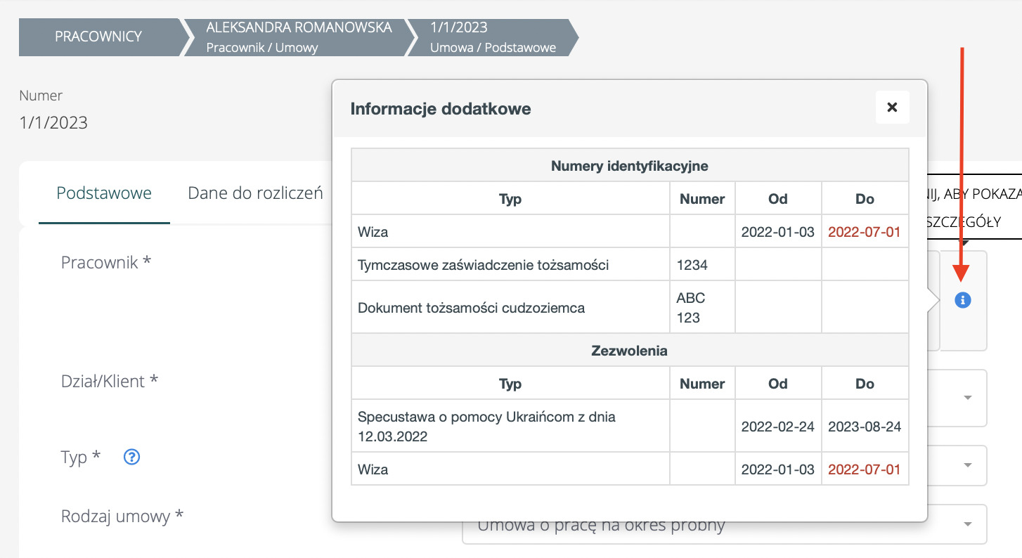 Przy wystawianiu umowy pracownikowi masz wgląd z jego dokumenty i zezwolenia.