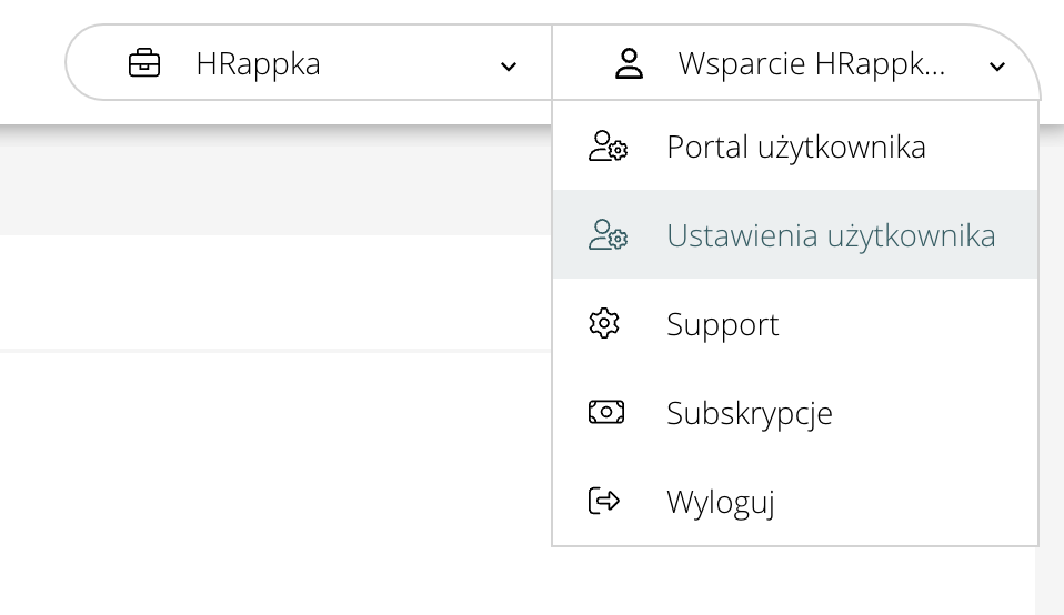 Swoje konto możesz skonfigurować klikając w Twoje imię i nazwisko w prawym górnym rogu, a następnie wybierając „Ustawienia użytkownika”.